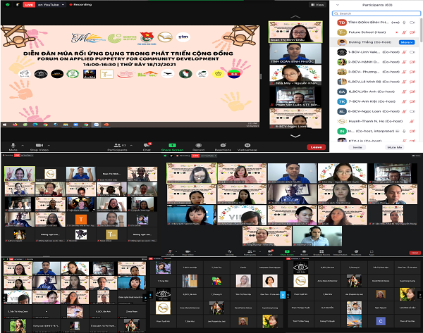 Nhiều nguồn cảm hứng cho các giải pháp phát triển múa rối cộng đồng đã được vun đắp tại Diễn đàn trực tuyến “Múa rối ứng dụng trong phát triển cộng đồng” (Forum on Applied Puppetry for Community Development). Gần 100 thành viên đến từ 4 châu lục đã dự sự kiện này.