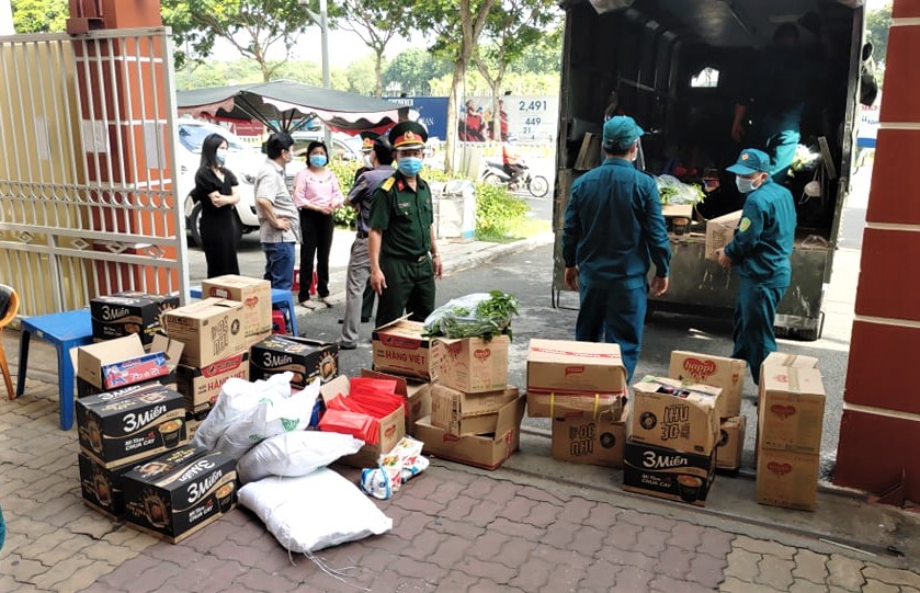 Sáng ngày 7/7, tại quận Tân Phú, Bộ Tư lệnh TP.HCM phối hợp cùng với các đoàn thể Thành phố, chính quyền quận tổ chức chuyến xe chở thực phẩm miễn phí phục vụ cho người dân nghèo, người dân khó khăn tại các khu vực phong tỏa, cách ly trên địa bàn