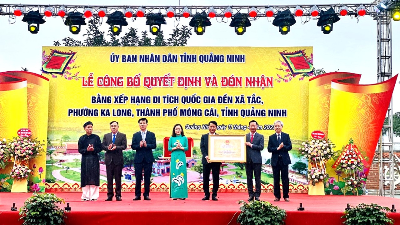 Sáng 11/04/2021, UBND tỉnh Quảng Ninh đã tổ chức “Lễ công bố quyết định và đón nhận Bằng xếp hạng Di tích Quốc gia” Đền Xã Tắc, thuộc phường Ka Long thành phố Móng Cái. Đây là ngôi đền nằm cạnh ngã ba sông biên giới, được coi là “Cột mốc văn hóa”, góp phần khẳng định chủ quyền lãnh thổ của Tổ quốc.