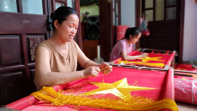 Những ngày cận kề Quốc khánh 2/9, không khí làm việc ở các xưởng thêu, may cờ Tổ quốc tại làng Từ Vân (Hà Nội) khẩn trương với tiếng máy cắt vải, máy khâu, tiếng nói cười rộn rã của người làm nghề...