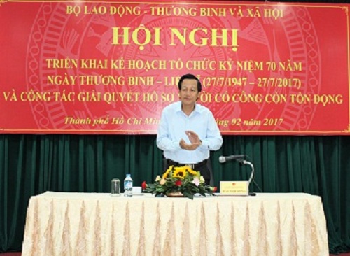 Tiếp theo Hội nghị tại thành phố Hải Phòng tổ chức ngày 17/2, sáng ngày 23/2/2017, tại Thành phố Hồ Chí Minh, Bộ LĐ - TB&XH đã tổ chức Hội nghị triển khai kế hoạch tổ chức kỷ niệm 70 năm Ngày Thương binh - Liệt sỹ (27/7/1947 - 27/7/2017) và công tác giải quyết hồ sơ người có công còn tồn đọng tại các địa phương khu vực phía Nam (từ Đà Nẵng trở vào).