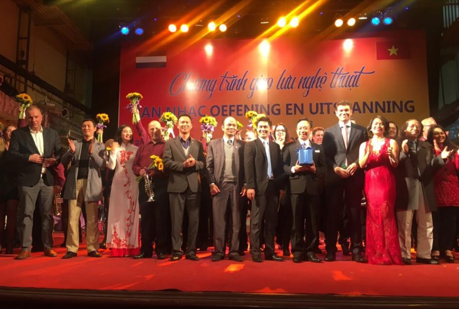 HOANHAP.VN - Tối 28/2 tại nhà hát lớn thành phố Hải Phòng, Ban nhạc Oefening en Uitspanning Hà Lan tổ chức buổi biểu diễn và giao lưu âm nhạc Ban nhạc Kèn đồng. Đây là hoạt động nằm trong chương trình lưu diễn từ 25/2 tới 3/3 tại Hải Phòng.