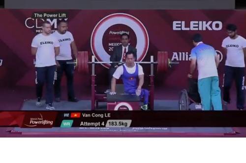 Tại Giải vô địch cử tạ người khuyết tật thế giới 2017-World Para Powerlifting tổ chức ở Mexico City, VĐV Lê Văn Công, nhà vô địch Paralympics Rio 2016 hạng 49 kg đã “đánh bại” đương kim vô địch thế giới, giành Huy chương Vàng (HCV), đồng thời phá luôn kỷ lục thế giới với mức tạ 183,5 kg.