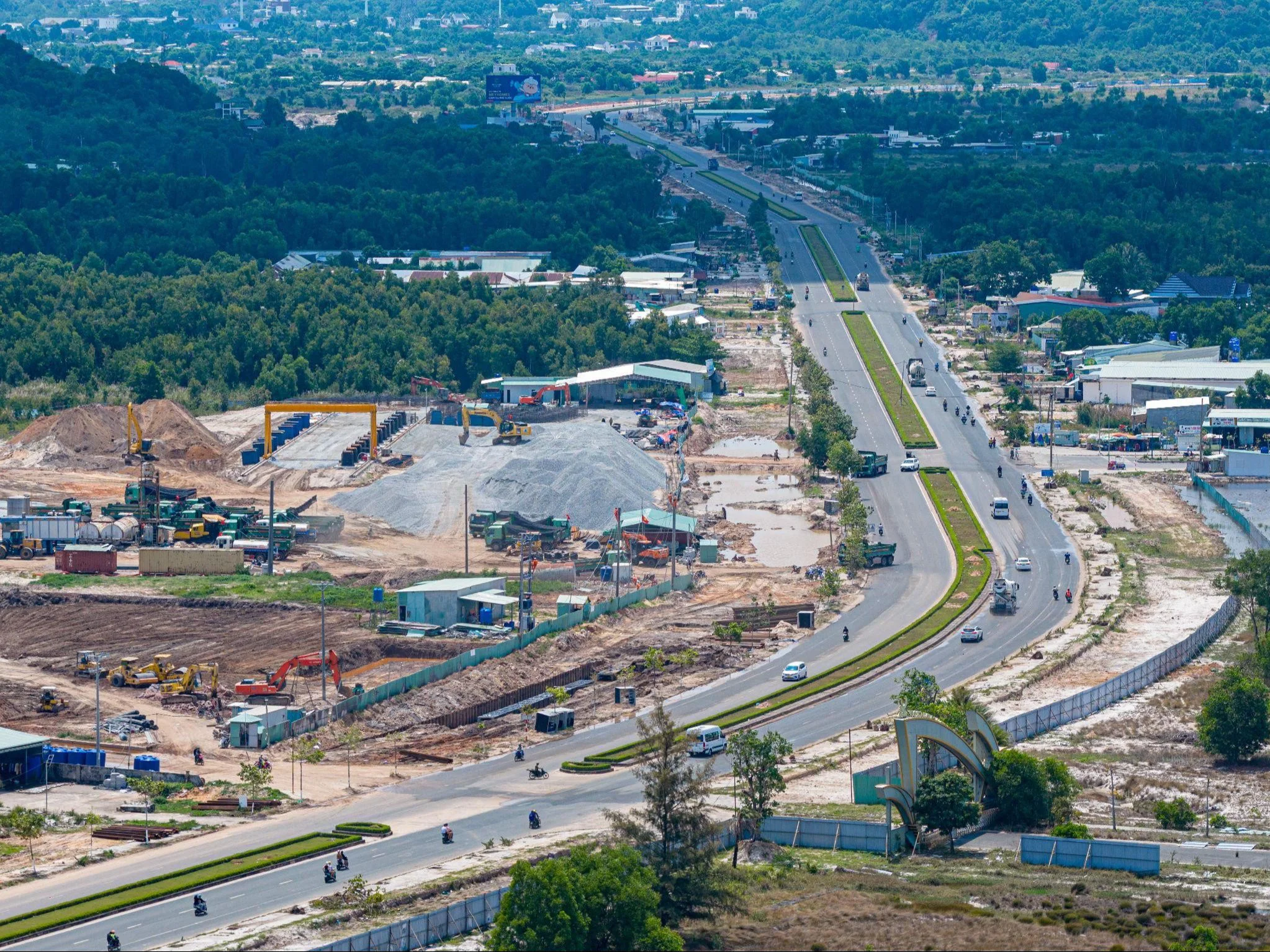 Hệ thống hạ tầng giao thông xương sống tại Phú Quốc đang được Sun Group đẩy nhanh tiến độ, trong đó tuyến đường DT975 mở rộng 10 làn xe đã đạt 15% sản lượng chỉ sau hơn 3 tháng thi công. Trong khi đó, định hướng phát triển tàu điện đô thị (LRT) cũng đang dần được hình thành, hứa hẹn hoàn thiện mạng lưới giao thông hiện đại, kết nối sân bay, trung tâm hội nghị và các khu đô thị, du lịch trên toàn đảo trước APEC 2027.