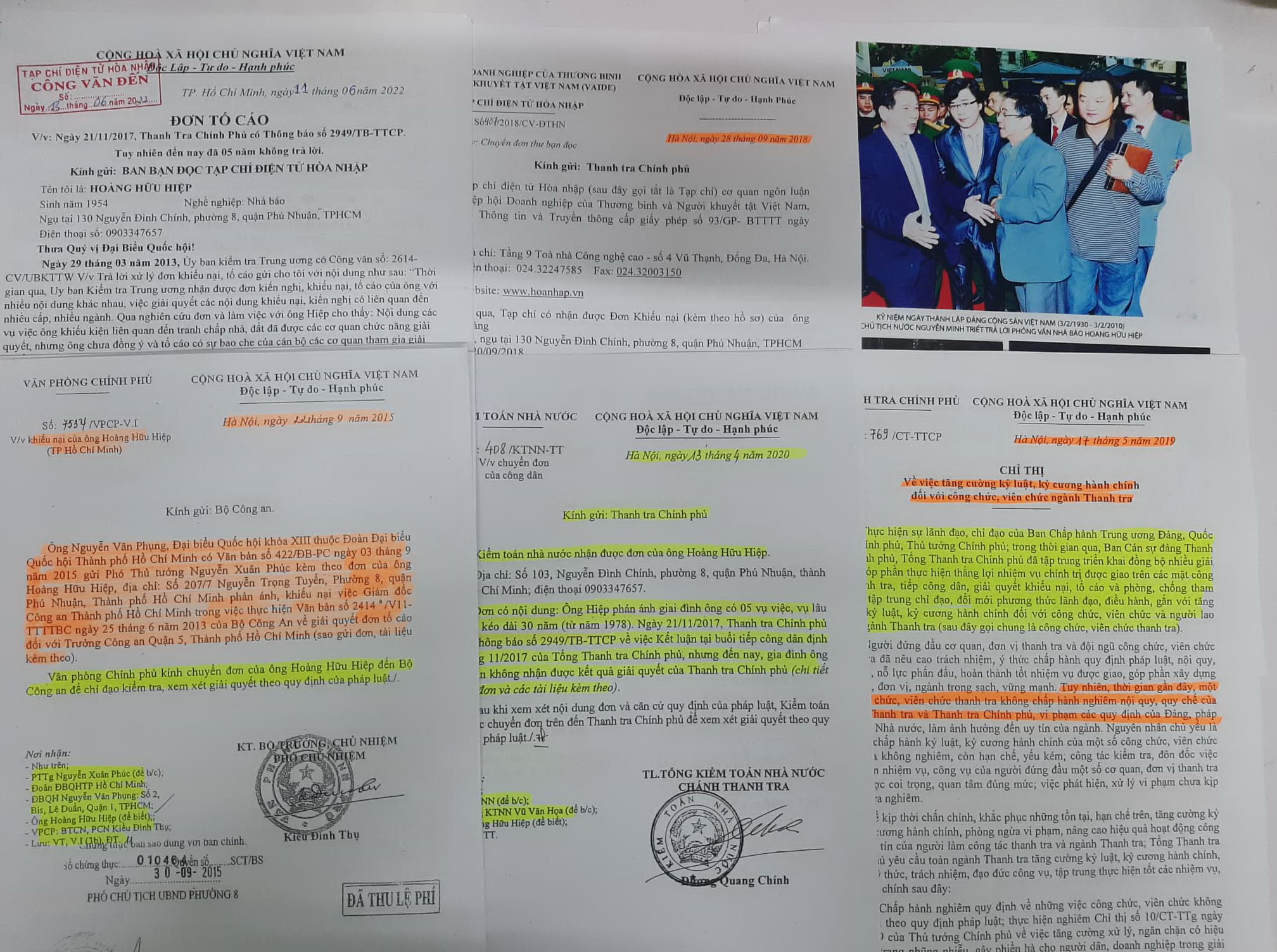 Ngày 13/6/2022, Tạp chí điện tử Hòa Nhập có nhận được đơn tố cáo (kèm theo hồ sơ) của ông Hoàng Hữu Hiệp (sinh năm 1954), ngụ tại 130 Nguyễn Đình Chính, phường 8, quận Phú Nhuận, TPHCM ghi ngày 19/05/2022.