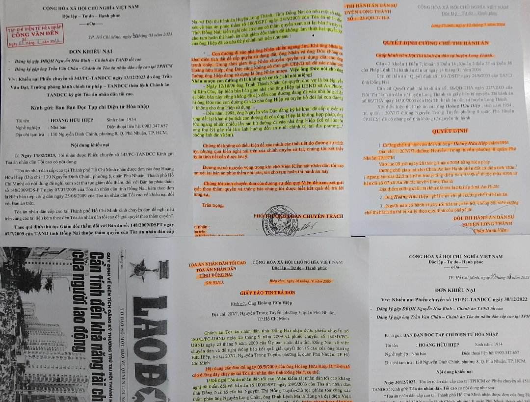 Ngày 05/04/2023, Tạp chí điện tử Hòa nhập có nhận được 2 Đơn khiếu nại đều ghi ngày 30/03/2023 (cùng 2 quyển hồ sơ) của ông Hoàng Hữu Hiệp (Sinh năm: 1954), tạm trú tại: 130 Nguyễn Đình Chính, phường 8, quận Phú Nhuận, TP. Hồ Chí Minh.