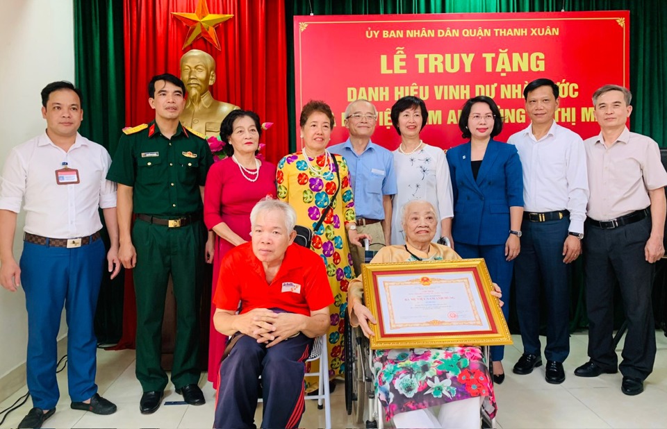 Chiều 24/7, nhân kỷ niệm 76 năm Ngày Thương binh - Liệt sĩ (27/7/1947 -27/7/2023), UBND quận Thanh Xuân đã tổ chức Lễ truy tặng danh hiệu “Bà mẹ Việt Nam Anh hùng” đối với mẹ Lê Thị Mái (phường Khương Mai, quận Thanh Xuân).