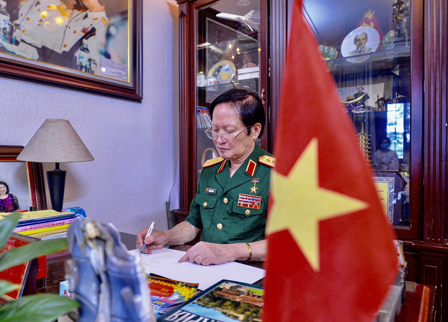 Thượng tướng Nguyễn Huy Hiệu, nguyên Thứ trưởng Bộ Quốc phòng, là một vị tướng trận mạc – từng trực tiếp chỉ huy chiến đấu tại chiến trường Quảng Trị – nhưng đồng thời cũng là một học giả, một cây viết cần mẫn với hàng chục đầu sách giá trị. Nhân dịp kỷ niệm 100 năm ngày Báo chí Cách mạng Việt Nam, phóng viên đã có cuộc trò chuyện sâu sắc với ông tại văn phòng làm việc, nơi ông vẫn đọc, viết và tiếp khách đều đặn mỗi ngày.