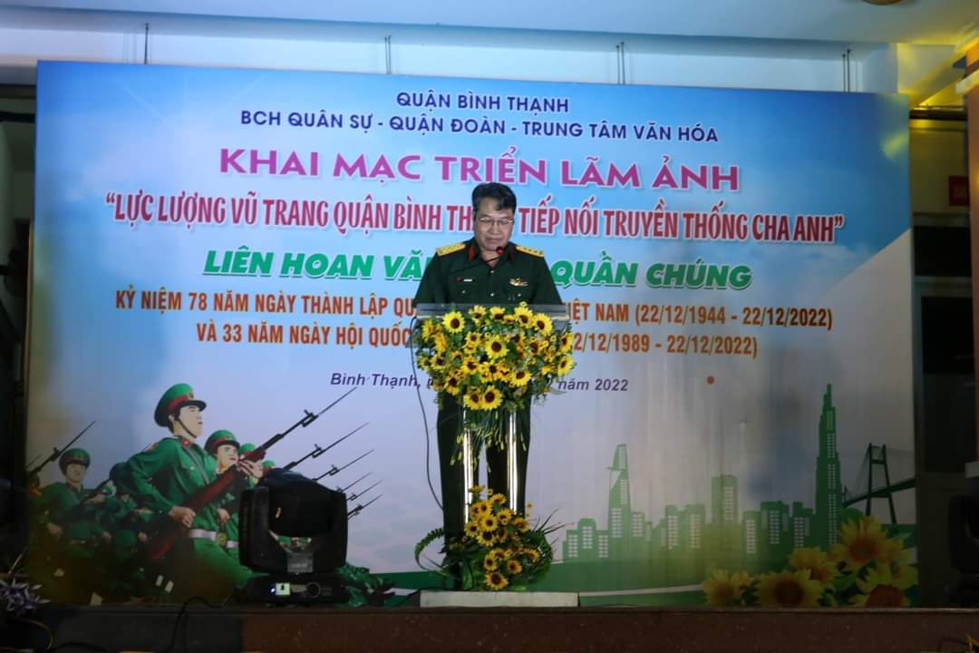 Ban Chỉ huy Quân sự quận phối hợp Ban Thường vụ Quận Đoàn và Trung tâm Văn hóa quận tổ chức triển lãm ảnh chủ đề: “Lực lực vũ trang quận Bình Thạnh tiếp nối truyền thống cha anh” và Liên hoan văn nghệ quần chúng lực lượng vũ trang quận Bình Thạnh năm 2022.