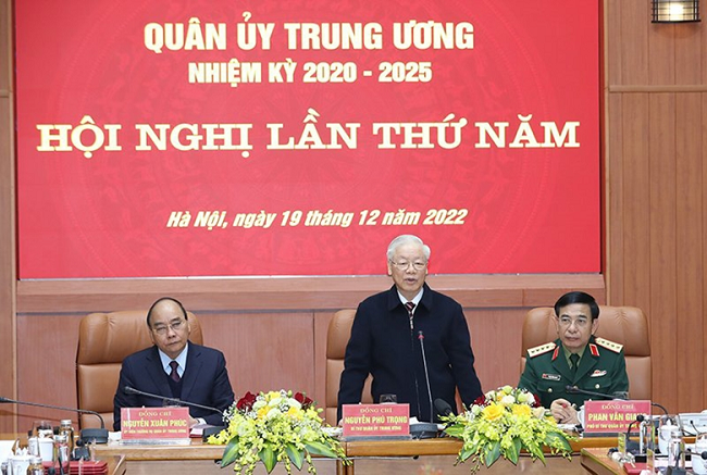 Tổng Bí thư Nguyễn Phú Trọng đề nghị quân đội triển khai nghiêm túc, chặt chẽ, đồng bộ Nghị quyết số 05 của Bộ Chính trị, quyết liệt điều chỉnh tổ chức lực lượng tinh, gọn, mạnh.