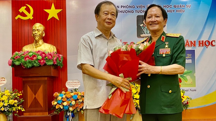 Tôi được Văn Phòng Viện sĩ KHQS Thượng tướng Nguyễn Huy Hiệu gửi giấy mời dự lễ ra mắt 2 cuốn sách. Tập truyện ký 'Đời bình nghiệp kết tinh thành sách quý' của nhiều tác giả viết về Thượng tướng viện sĩ, Anh hùng lực lượng vũ trang Nguyễn Huy Hiệu và Tập truyện ngắn của nhà văn Lê Hoài Nam, cựu sỹ quan Hải quân. Vừa thấy tôi Thượng tướng tay bắt, mặt mừng cầm tay tôi kéo vào chụp ảnh.