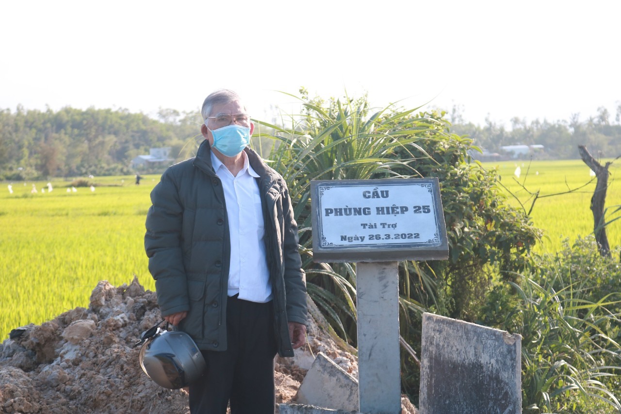Nhiều năm nay, cựu chiến binh- đảng viên Nguyễn Đình Phùng ở TP Tam Kỳ, tỉnh Quảng Nam đã lặn lội khắp các nẻo đường, cần mẫn xây nên hàng chục cây cầu cho dân.