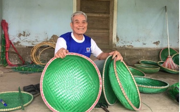 Tận dụng những sợi dây nhựa bỏ đi, vị thương binh tại Quảng Bình đã sáng tạo thành những vật dụng hữu ích cho mọi nhà.