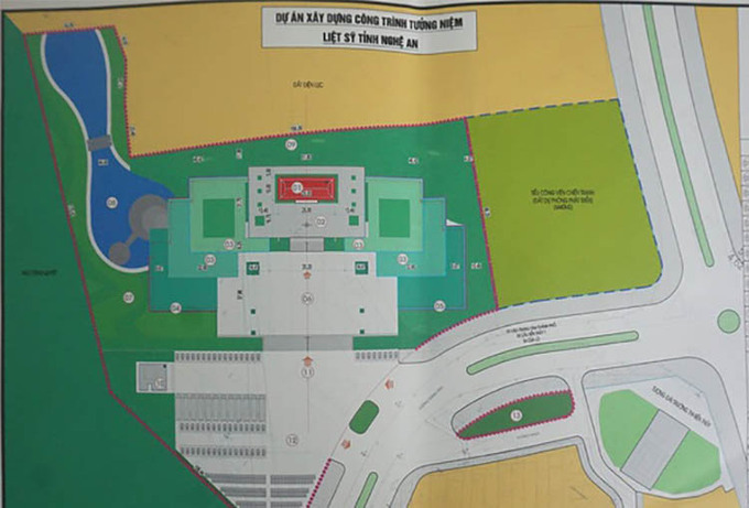 Công trình đền thờ liệt sĩ dự kiến tọa lạc trên khu đất 2,7 hecta ở phường Trung Đô, TP Vinh, tỉnh Nghệ An, với tổng mức đầu tư khoảng 80 tỷ đồng.