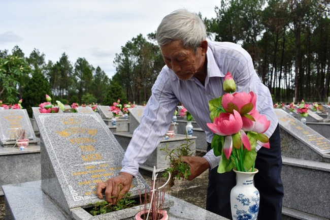 Với bước chân tập tễnh, chậm rãi ở tuổi xế chiều, người cựu chiến binh ấy mỗi ngày vẫn lặng lẽ lần bước qua từng ngôi mộ, tỉ mỉ nhổ từng cây cỏ dại, lau từng vết bụi phủ mờ trên những tấm bia.