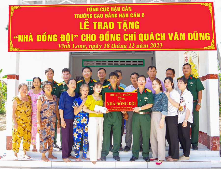 Ngày 18/12, tại ấp An Thạnh, xã Lục Sĩ Thành, huyện Trà Ôn, tỉnh Vĩnh Long thừa ủy quyền Thủ Trưởng Tổng Cục Hậu cần (Bộ Quốc Phòng), đại diện lãnh đạo Trường Cao đẳng Hậu Cần 2 tổ chức khánh thành và bàn giao “Nhà đồng đội” cho gia đình Thiếu tá Quách Văn Dũng – Giảng viên Khoa Quân sự chung của nhà trường.