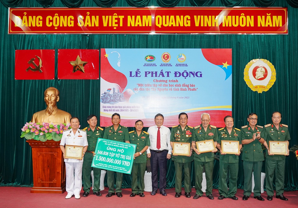 Ngày 15/8, tại TP Hồ Chí Minh, Hiệp Hội Doanh nhân Cựu chiến binh Việt Nam phối hợp cùng Hội Cựu chiến binh TP Hồ Chí Minh và Hội Doanh nhân Cựu chiến binh TP Hồ Chí Minh tổ chức phát động chương trình “Một triệu tập vở cho học sinh các dân tộc Tây Nguyên và tỉnh Bình Phước”.