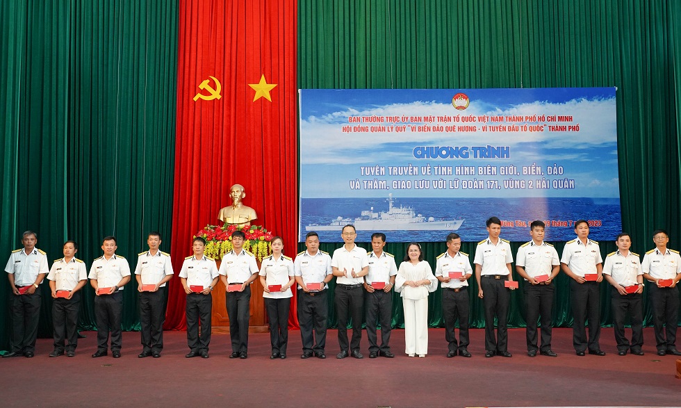 Ngày 19/7, tại TP. Vũng Tàu, Đoàn đại biểu UBMTTQVN TP Hồ Chí Minh có chuyến thăm, giao lưu cùng cán bộ, chiến sĩ Lữ đoàn 171 (Vùng 2 Hải Quân).