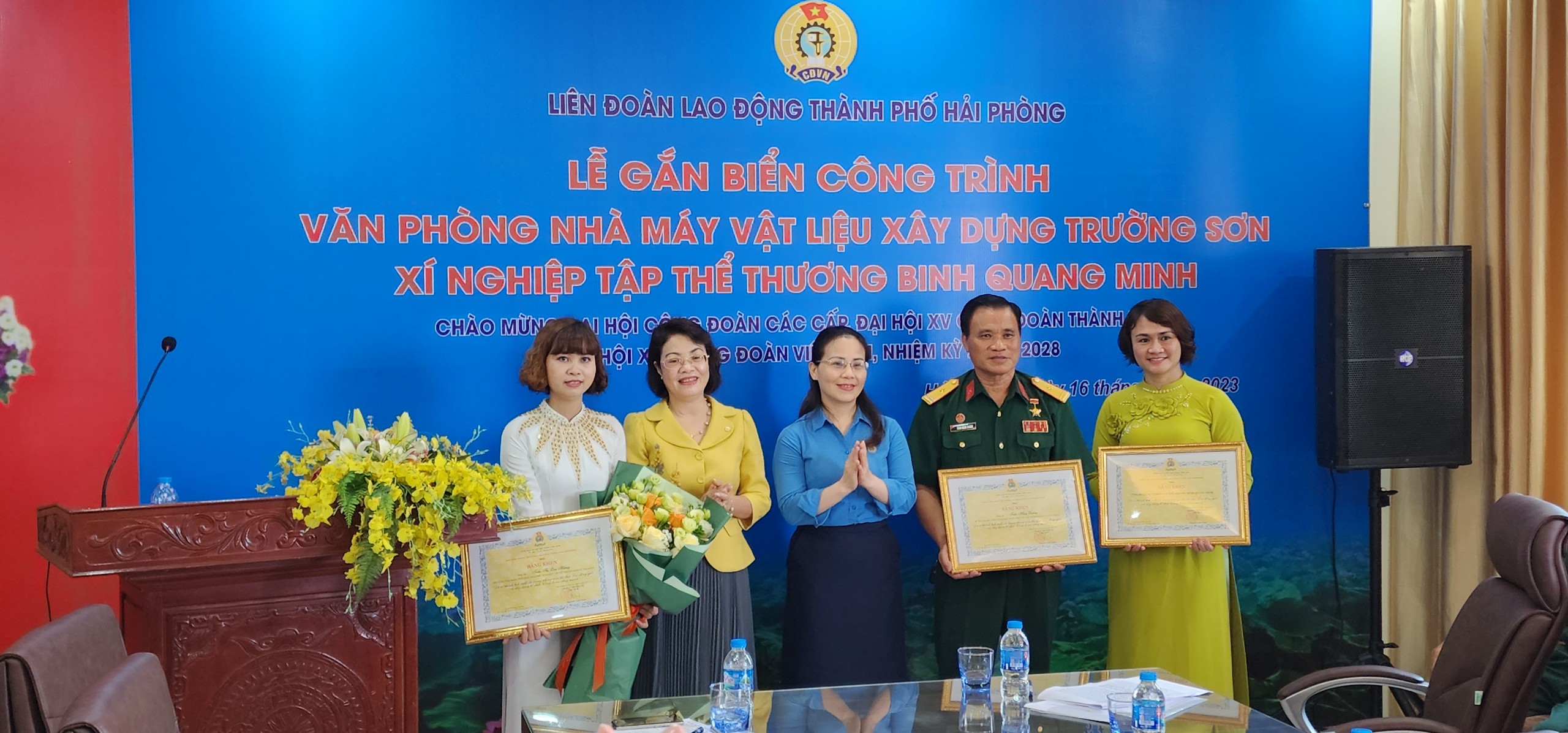 Sáng 16/5, Xí nghiệp Tập thể thương binh Quang Minh gắn biển công trình chào mừng Đại hội Công đoàn lần thứ 15 thành phố Hải Phòng. Đây là một trong những hoạt động hưởng ứng Tháng công nhân năm 2023.