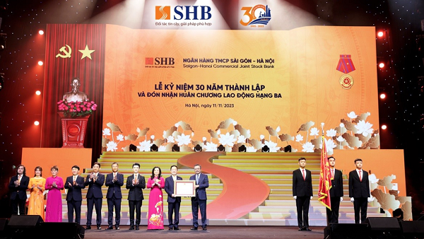 Ngày 11/11/2023, Ngân hàng Sài Gòn – Hà Nội (SHB) vừa long trọng tổ chức Lễ kỷ niệm 30 năm thành lập (13/11/1993 - 13/11/2023) và vinh dự đón nhận Huân chương Lao động hạng Ba.