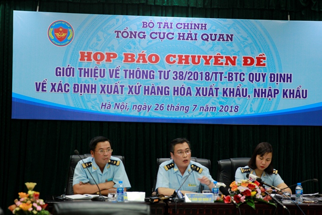 HOANHAP.VN - Chiều 26/7, Tổng cục Hải Quan (Bộ Tài chính) tổ chức họp báo chuyên đề giới thiệu Thông tư 38/2018/TT-BTC quy định về xác định xuất xứ hàng hóa xuất khẩu, nhập khẩu. Thông tư có hiệu lực từ ngày 20/5/2018.