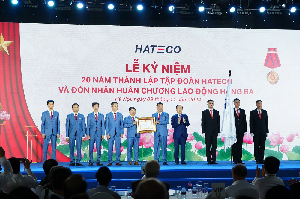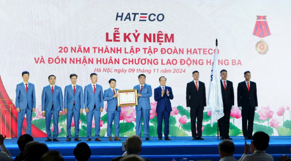 Ngày 9/11/2024, Tập đoàn Hateco long trọng tổ chức Lễ kỷ niệm 20 năm ngày thành lập (4/11/2004 - 4/11/2024) và đón nhận Huân chương Lao động hạng Ba do Đảng, Nhà nước trao tặng.