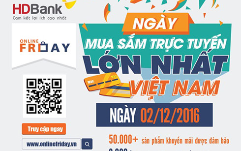 HDBank triển khai chương trình khuyến mại Online Friday – ngày mua sắm trực tuyến dành cho thẻ ghi nợ nội địa duy nhất vào ngày 2/12/2016.