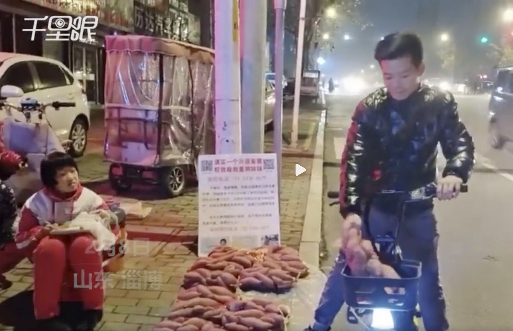 Trong bộ đồng phục vẫn thường mặc đến trường, cô bé cứ đêm đến lại ra vỉa hè vừa bán khoai, vừa học.