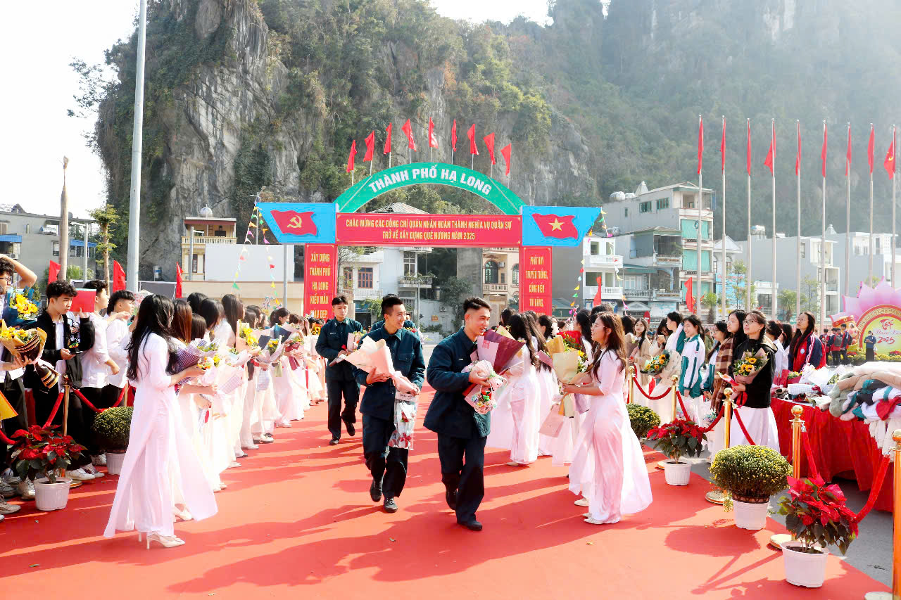 Trong không khí vui tươi, phấn khởi của toàn Đảng, toàn quân, toàn dân đang ra sức thi đua lập thành tích chào mừng 95 năm thành lập Đảng Cộng sản Việt Nam (03/02/1930-03/02/2025) và đón Tết Nguyên đán Ất Tỵ 2025. Thành phố Hạ Long đã trang trọng tổ chức đón trên 300 quân nhân, những người con thân yêu của quê hương hoàn thành nghĩa vụ quân sự trở về địa phương.