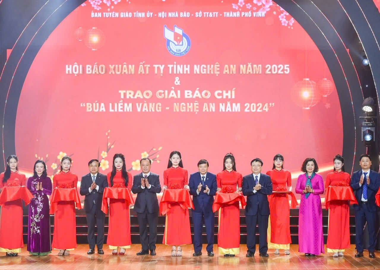 Sáng 18/1, Ban Tuyên giáo Tỉnh uỷ, Hội Nhà báo Nghệ An, Sở Thông tin và Truyền thông Nghệ An và Thành uỷ, UBND thành phố Vinh tổ chức khai mạc Hội Báo Xuân Ất Tỵ 2025 và trao giải Báo chí 'Búa liềm vàng - Nghệ An năm 2024'.