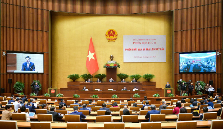 Sáng 18/3, tại Nhà Quốc hội, dưới sự chủ trì của Chủ tịch Quốc hội Vương Đình Huệ, Uỷ ban Thường vụ Quốc hội tổ chức Phiên Chất vấn và trả lời chất vấn nhóm vấn đề thuộc lĩnh vực tài chính. Phó Chủ tịch Quốc hội Nguyễn Đức Hải điều hành nội dung phiên họp.