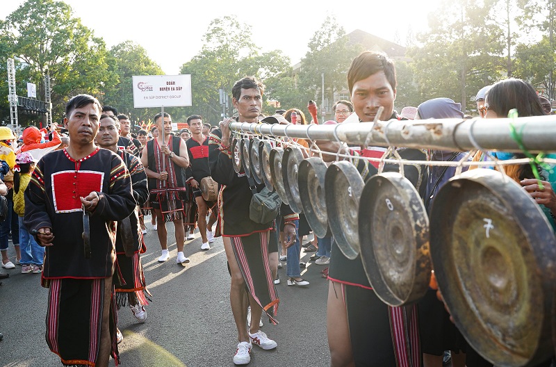 Chiều 10/3, Ban tổ chức Lễ hội Cà phê Buôn Ma Thuột lần thứ 8 tổ chức Lễ hội Đường phố với chủ đề “Buôn Ma Thuột - Nơi hội tụ 3 nền văn minh cà phê thế giới”. Màn trình diễn đường phố mang đậm bản sắc Tây nguyên.
