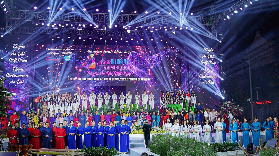 Tối 3/2, tại Phố đi bộ Nguyễn Huệ (Quận 1), Lễ hội áo dài TP Hồ Chí Minh lần thứ 9 năm 2023 chính thức khai mạc với chủ đề “Tôi yêu áo dài Việt Nam”. Toàn bộ chương trình khai mạc diễn ra với hình thức trực tiếp và trực tuyến qua các kênh truyền thông, truyền hình của Thành phố.
