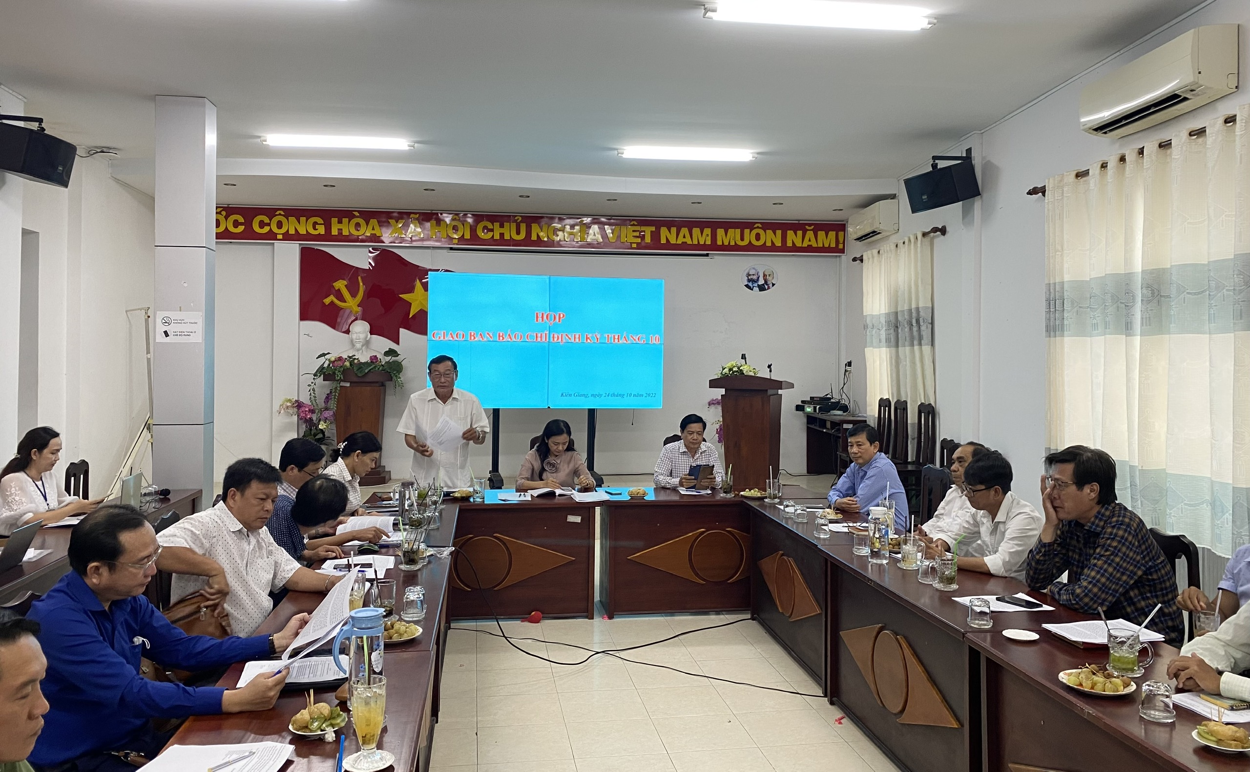 Ngày 24/10, Sở Thông tin và Truyền thông phối hợp với Ban Tuyên giáo Tỉnh ủy Kiên Giang và Hội Nhà báo tỉnh tổ chức họp giao ban Báo chí định kỳ tháng 10, nhằm đánh giá tình hình công tác thông tin, tuyên truyền và định hướng tháng 11 năm 2022.