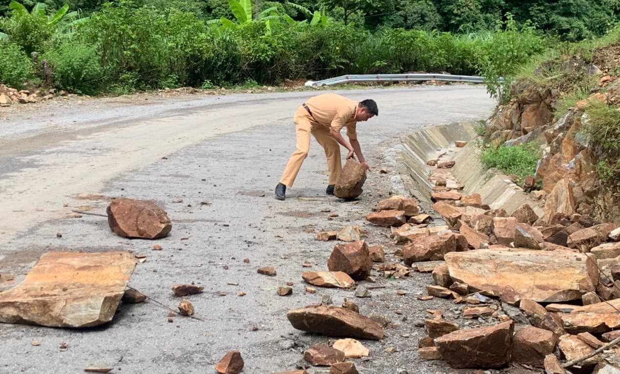 Khi nhận được tin báo tại Km439 và Km442, tuyến Quốc lộ 37 thuộc khu vực đèo Chẹn có hiện tượng đất đá sạt lở, gây cản trở giao thông, đội CSGT - TT Công an huyện Bắc Yên đã dầm mưa tiến hành dọn dẹp và đảm bảo trật tự an toàn giao thông trên địa bàn.