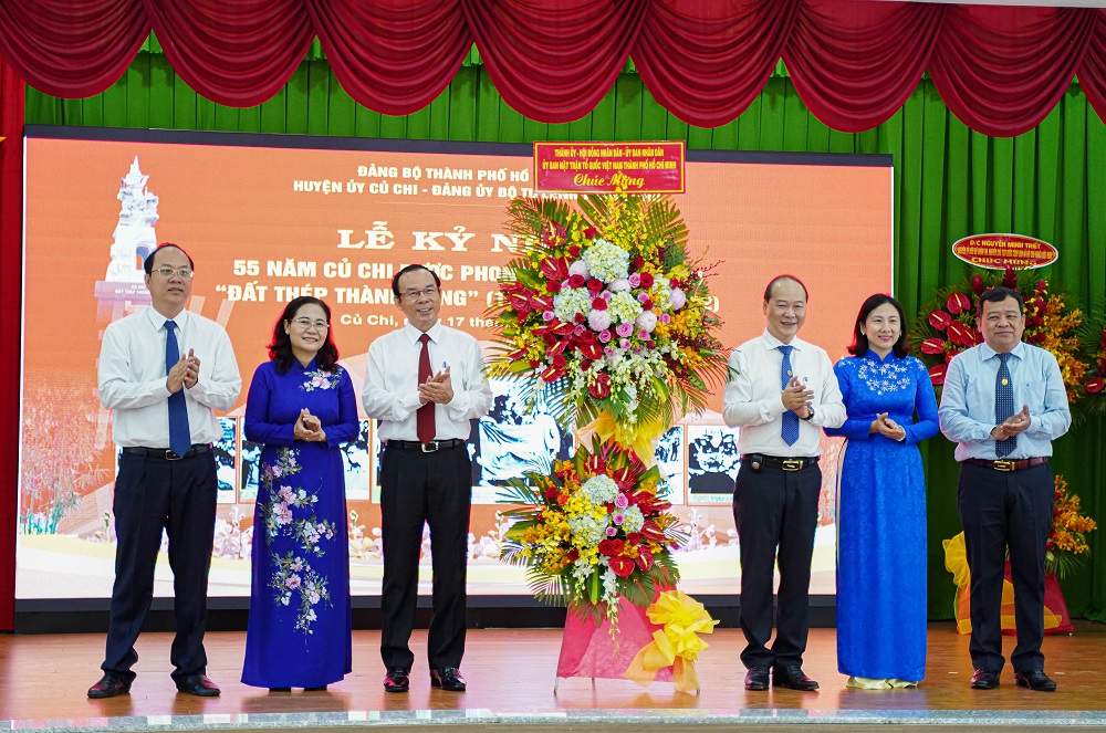 Với những chiến công và thành tích đặc biệt xuất sắc, ngày 17/9/1967, tại Đại hội anh hùng, chiến sĩ thi đua và dũng sĩ các lực lượng Vũ trang Nhân dân giải phóng toàn miền Nam lần thứ 2, quân và dân huyện Củ Chi vinh dự được Ủy ban Trung ương mặt trận dân tộc giải phóng miền Nam Việt Nam trao tặng danh hiệu “Đất thép thành đồng”. Trong chiến đấu anh dũng, trong lao động anh hùng, trong suốt 55 năm qua, Đảng bộ, chính quyền và nhân dân huyện Củ Chi luôn trân quý, giữ gìn và phát huy truyền thống cách mạng, thi đua lập nhiều thành tích để luôn xứng đáng với danh hiệu “Đất thép thành đồng" được vinh dự đón nhận.