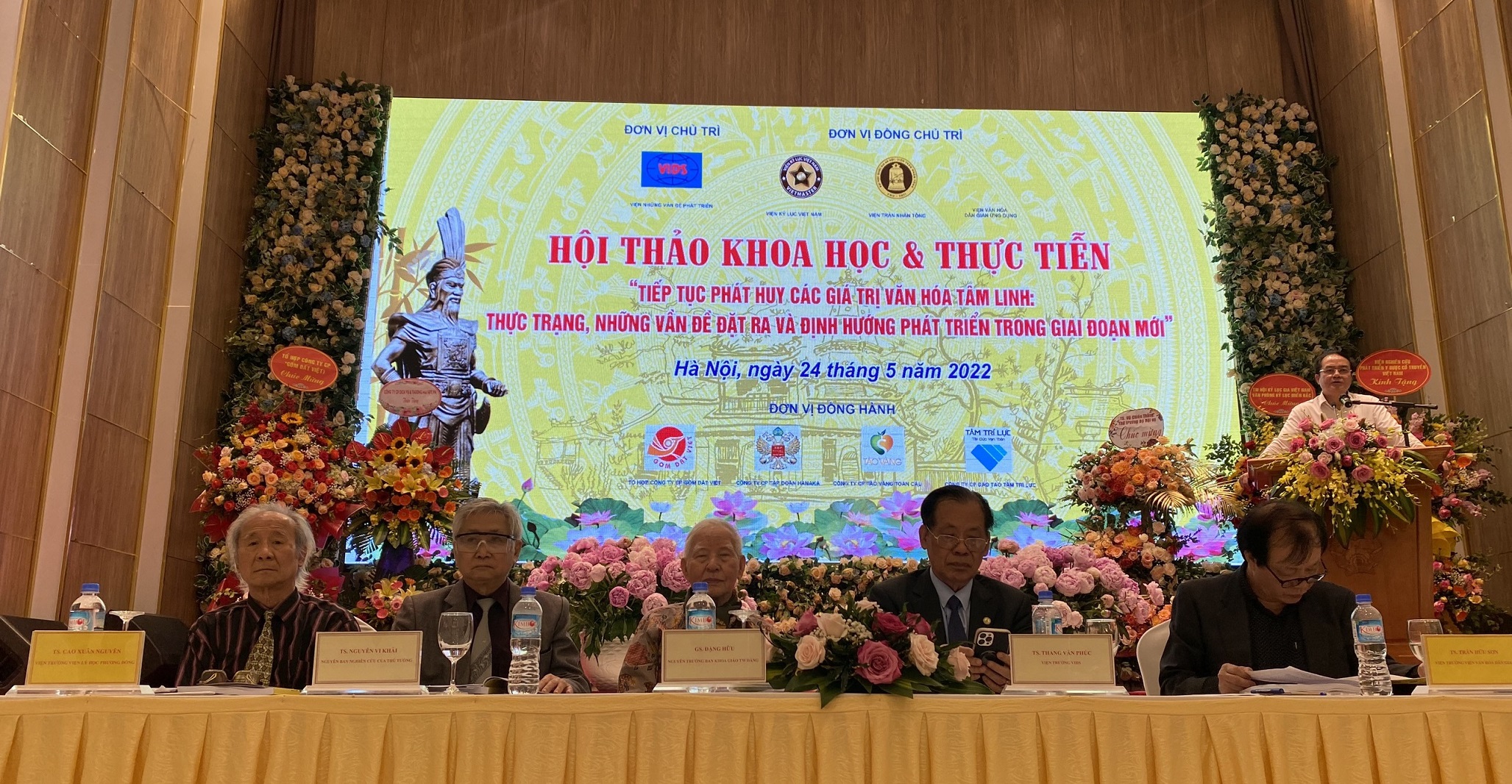 Sáng ngày 24/5/2022, tại Trung tâm Hội nghị số 37 Hùng Vương, quận Ba Đình, Hà Nội, Viện những vấn đề phát triển (VIDS) thuộc Liên hiệp các Hội Khoa học và Kỹ thuật Việt Nam đã tổ chức Hội thảo khoa học & thực tiễn: “Tiếp tục phát huy các giá trị văn hóa tâm linh: Thực trạng, những vấn đề đặt ra và định hướng phát triển trong giai đoạn mới”.