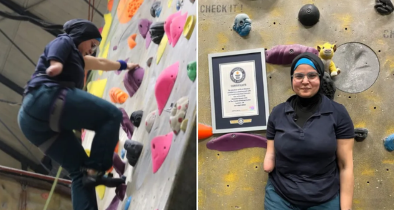Dù chỉ có một tay, song Anoushe Husain đã khiến mọi người ngạc nhiên và thán phục khi chinh phục bức tường cao như thế.