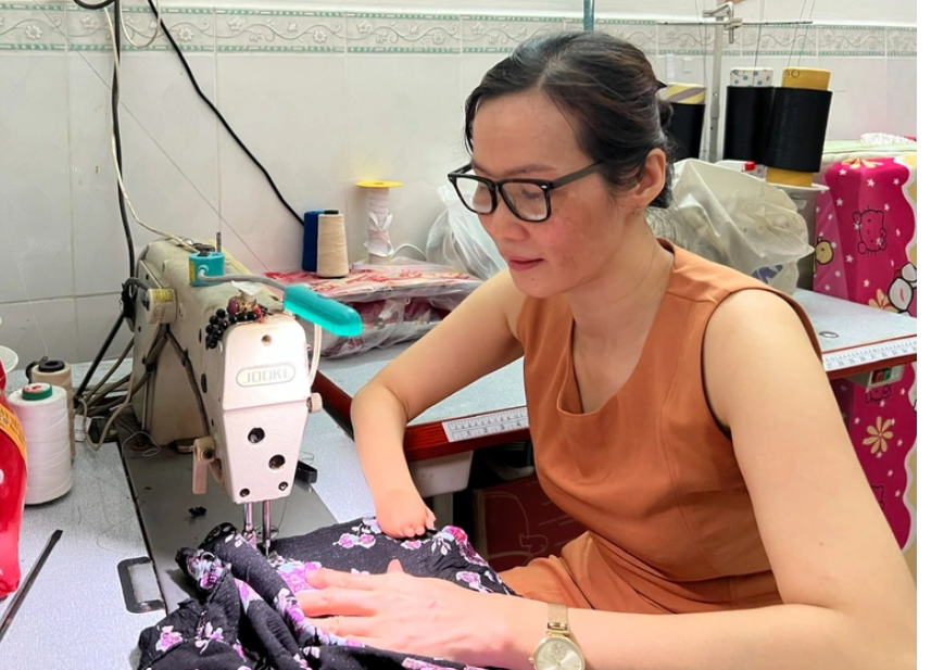 Ngoài giờ may ở xưởng, chị Liên còn nhận đồ về nhà giặt thuê mỗi đêm để kiếm thêm thu nhập, nuôi các con ăn học.