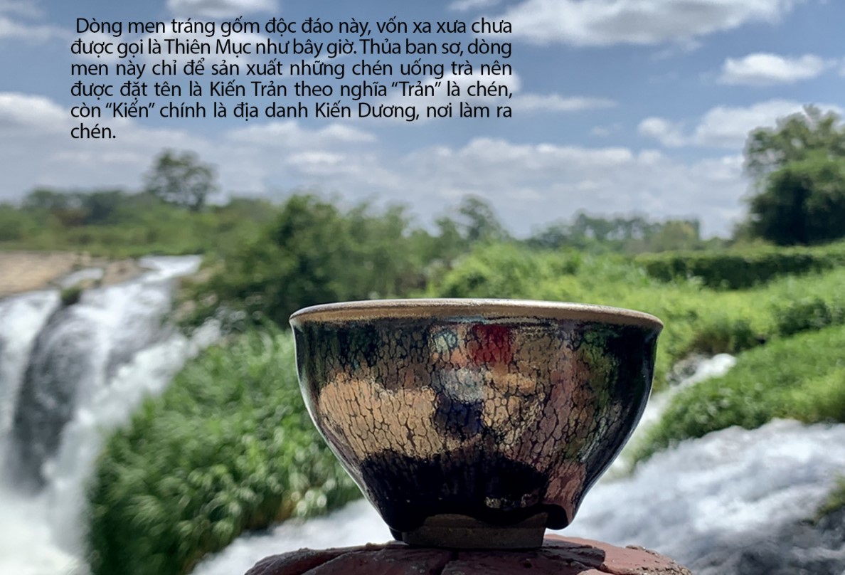 Nghệ nhân trẻ Trần Thành Công và nghệ nhân Bùi Thanh Tùng (làng gốm Bát Tràng) đã mang đến Hội chợ triển lãm hàng lưu niệm Thủ đô năm 2022 bộ ấm trà men Thiên Mục Bát Tràng.