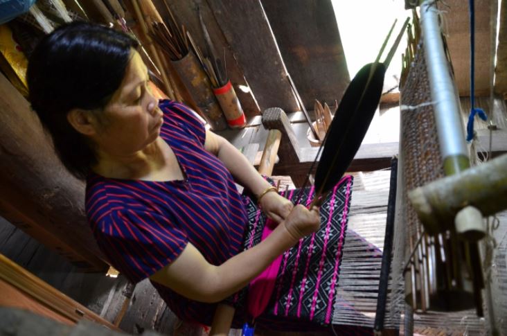 Tuy chỉ có một tay lành lặn, song chị Ỷ vẫn luôn cố gắng trau dồi, theo nghề dệt để làm nên những sản phẩm đẹp và nuôi sống bản thân.