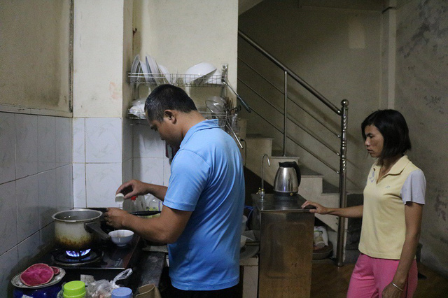 Bà Nguyễn Thị Mỳ (SN 1950) ở thôn Hoàng Xá, xã Khánh Hà, huyện Thường Tín (Hà Nội) chưa có một ngày thảnh thơi khi phải chăm sóc cậu con trai mắc bệnh thần kinh và con dâu bị bệnh tim độ 3 suốt nhiều năm qua.