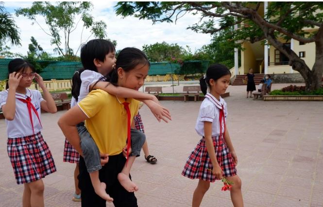 Thiệt thòi vì đôi chân tật nguyền, song Trang may mắn có người bạn tuyệt vời, 4 năm qua đồng hành cùng em đi học, đi chơi.