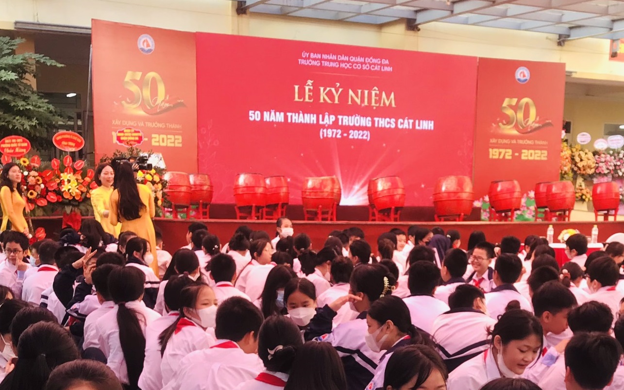 Sáng nay (12/11), thầy cô và học trò từ khối 6 đến 9 của Trường Trung học cơ sở Cát Linh (quận Đống Đa, Hà Nội) đã tổ chức lễ kỷ niệm 50 năm ngày thành lập trường (1972-2022).