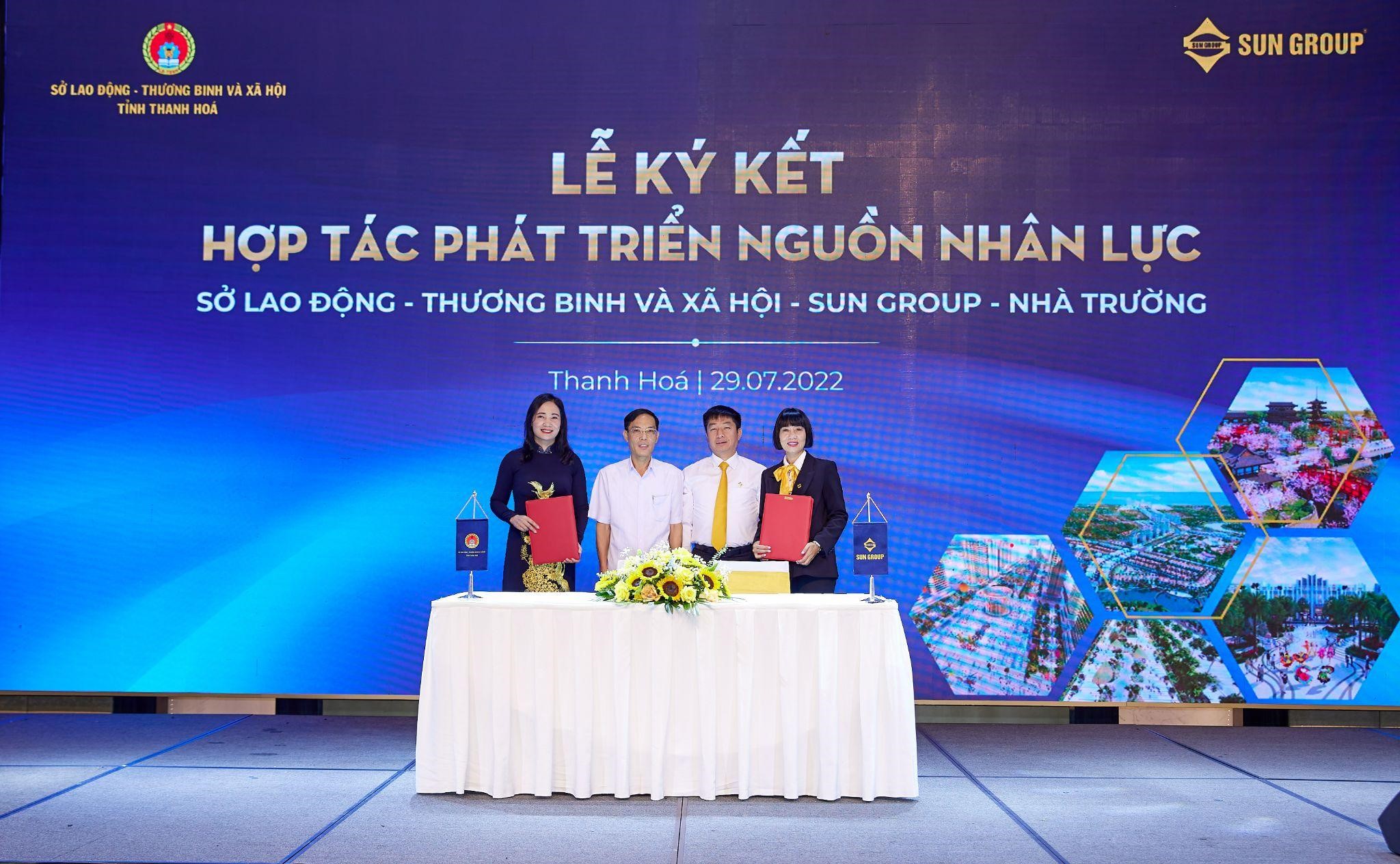 Ngày 29/7 tại Thanh Hóa, tập đoàn Sun Group, Sở Lao động - Thương binh & Xã hội Thanh Hóa và các trường đại học, cao đẳng trên địa bàn đã ký kết hợp tác phát triển nguồn nhân lực, hứa hẹn mang đến những đột phá mới cho chất lượng nhân sự tại Thanh Hóa trong thời gian tới.