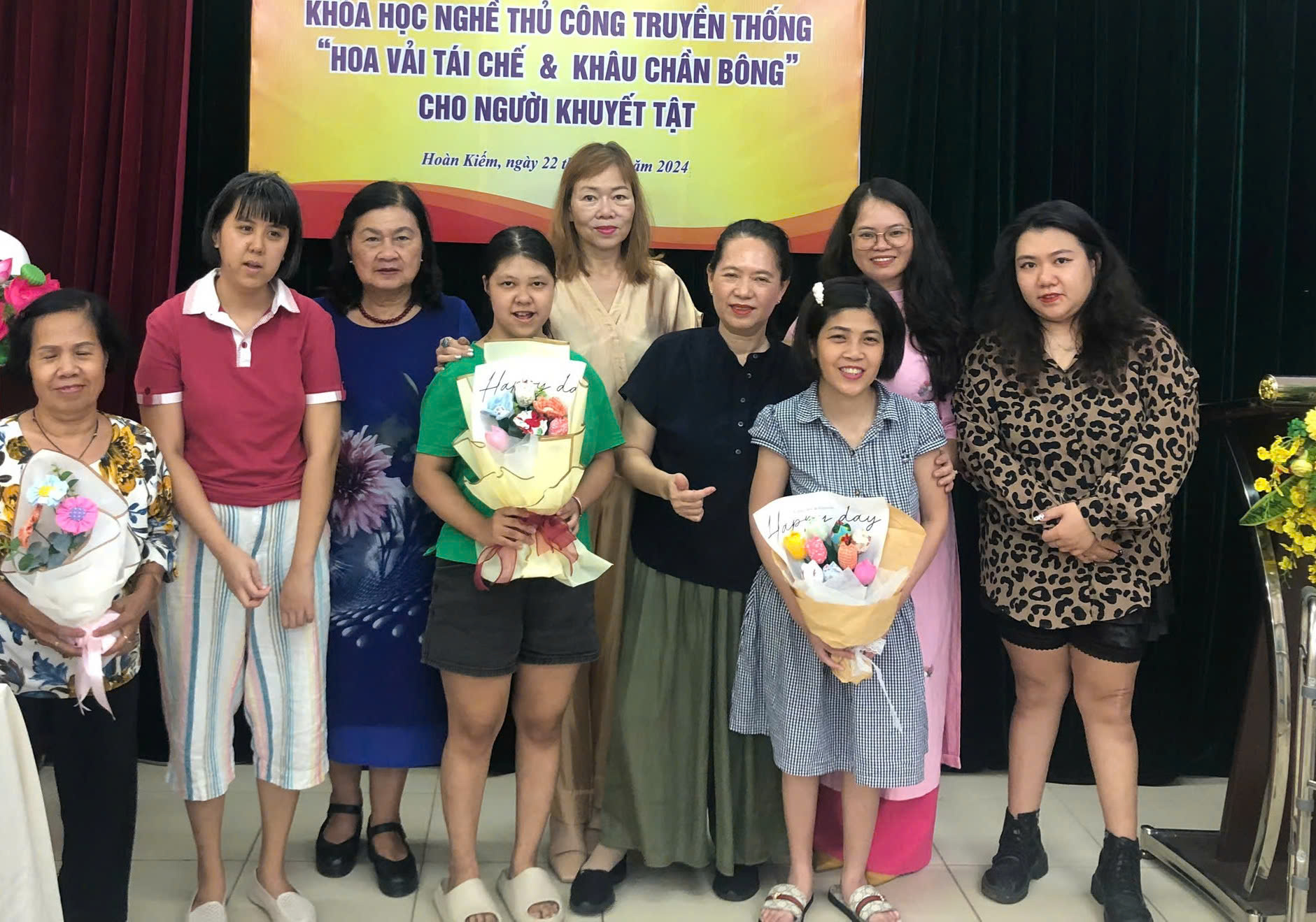 Ngày 22/10/2024, tại quận Hoàn Kiếm, Hội Người Khuyết tật quận phối kết hợp với Viện Nghiên cứu Ứng dụng Mỹ thuật Sản phẩm Làng nghề Việt Nam tổ chức khóa học Nghề thủ công Hoa Vải tái chế & Khâu Chần Bông cho người khuyết tật (NKT) trên địa bàn.