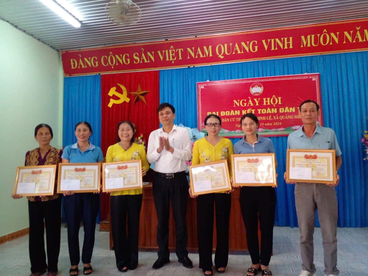 Chiều ngày 17/11, Nhân kỷ niệm 94 năm Ngày truyền thống MTTQ Việt Nam (18.11.1930 - 18.11.2024), Ban Công tác Mặt trận thôn Bắc Minh Lệ, xã Quảng Minh, thị xã Ba Đồn tổ chức Ngày hội Đại đoàn kết toàn dân tộc.