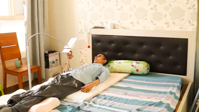 Do tai nạn giao thông, anh Tín phải gắn liền với chiếc xe lăn. Nhưng đối với anh, cuộc sống luôn đón chào những ai dám bước tiếp.