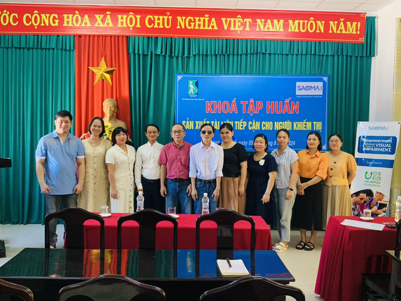 Thực hiện cam kết giữa Hội người mù (HNM) tỉnh Thừa Thiên Huế và Trung tâm hướng nghiệp và công nghệ vì người mù Sao Mai trong khuôn khổ dự án “Nâng cao năng lực cho người khiếm thị thông qua việc ứng dụng công nghệ số”, sáng ngày 05/8/2024, HNM tỉnh Thừa Thiên Huế đã tổ chức khai mạc lớp tập huấn sản xuất tài liệu tiếp cận cho người khiếm thị.