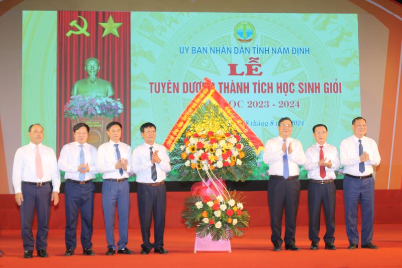 Sáng 8-8, tại Nhà Văn hóa 3-2 tỉnh, UBND tỉnh Nam Định đã long trọng tổ chức Lễ tuyên dương thành tích học sinh giỏi (HSG) năm học 2023-2024. Đồng chí Phạm Gia Túc, Ủy viên Trung ương Đảng, Bí thư Tỉnh ủy Nam Định cùng đại diện các Cục, Vụ thuộc Bộ GD&ĐT đã về dự, tặng hoa chúc mừng .